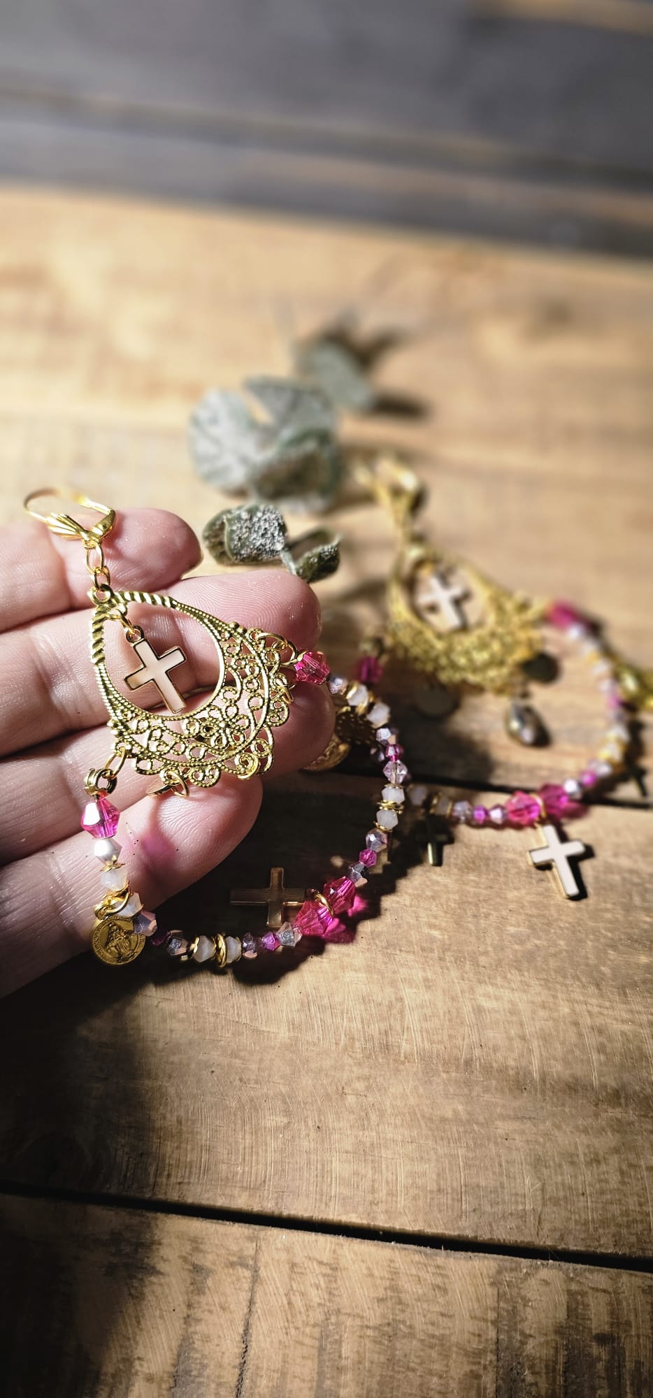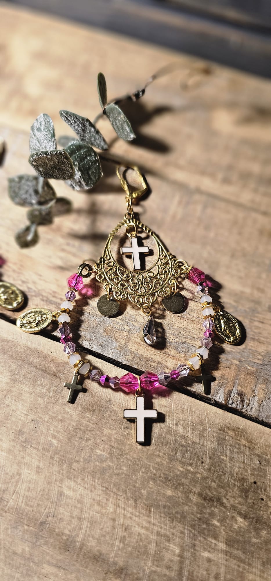 De fins strass en cristal rose viennent parfaire l’ensemble, accentuant la brillance et le raffinement de ces boucles d’oreilles. Conçues pour être à la fois élégantes et incroyablement légères, elles subliment tous les styles, du plus bohème au plus sophistiqué. Une création unique, signée Les Francines, qui célèbre le mariage du travail artisanal et du luxe discret.