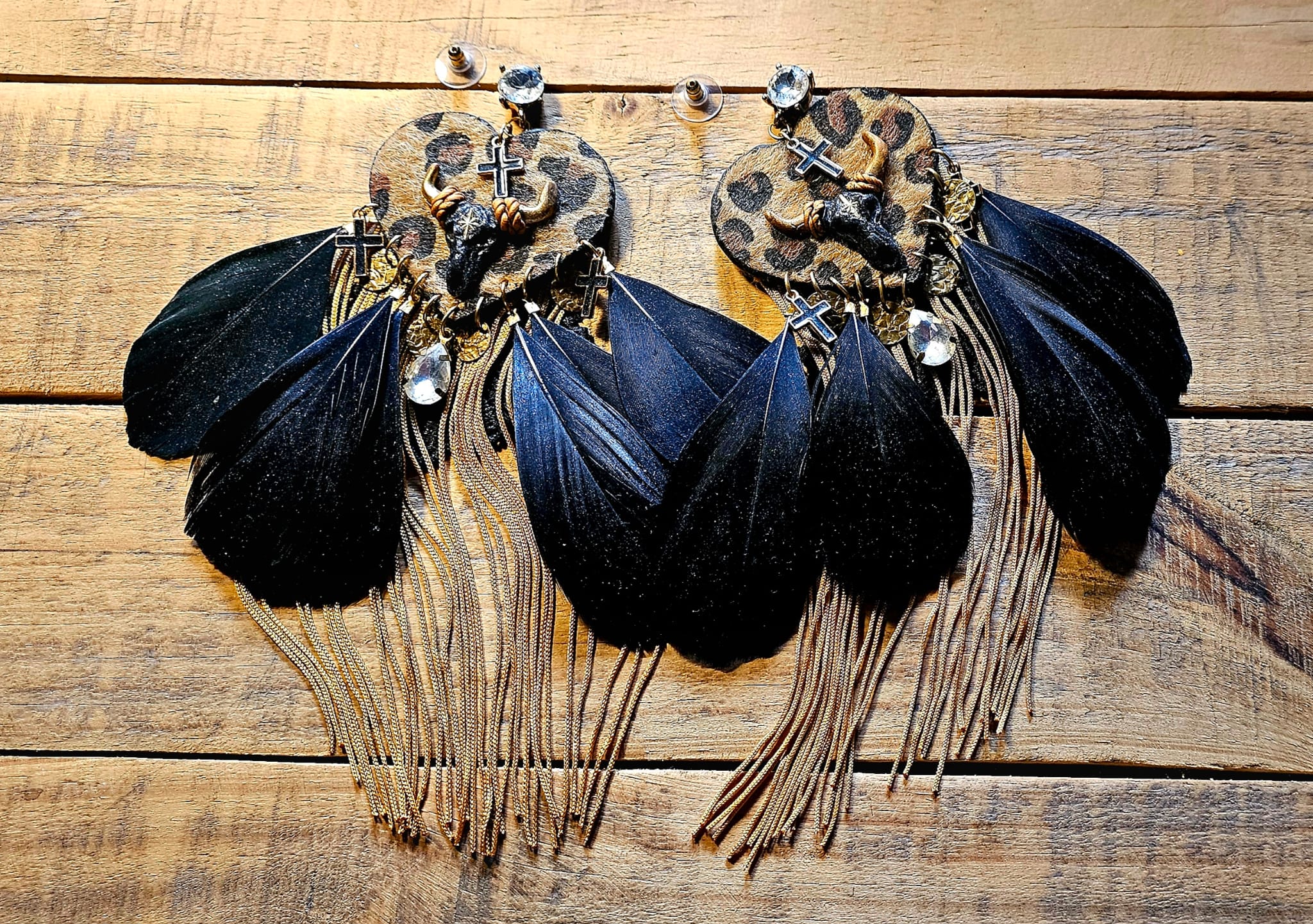 Le bijou I Love Skull conjugue audace et raffinement dans une création unique et sculpturale. Son cœur en cuir à imprimé léopard, rehaussé de fourrure, incarne une élégance sauvage et assumée. Une sculpture en argile polymère, minutieusement façonnée à la main et sublimée par des paillettes noir et or, apporte une touche précieuse et mystérieuse. Des plumes noires et des strass en cristal blanc viennent parfaire cette pièce envoûtante, capturant la lumière et l’attention avec intensité.